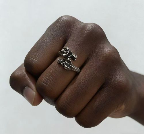 Vintage Distressed Silver Double Dragon Ring for Men – Timeless Edge for Bold Style